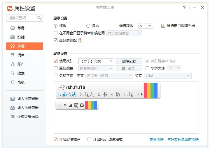 搜狗拼音皮肤设置: