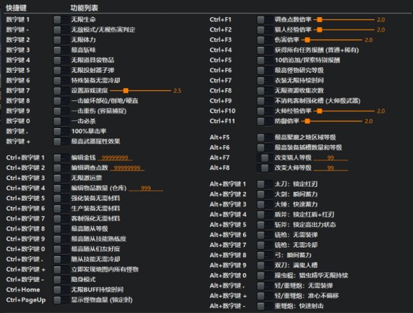 Ctrl +数字键。 – Palico小工具无冷却时间