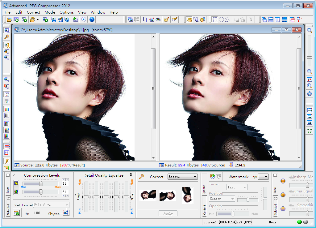 Advanced JPEG Compressor 是一款非常优秀的图像压缩工具,软件能够 将颜色与色调的要素分离解决,以得到更优的发动机压缩比与画面质量,软件也有照片的部分缩小作用,对特殊部位区块链作不一样的缩小调节,适用画质清晰的照片,除此之外,它还可以立即自扫描机扫入照片作缩小的调节解决,以后?出变成BMP文档。