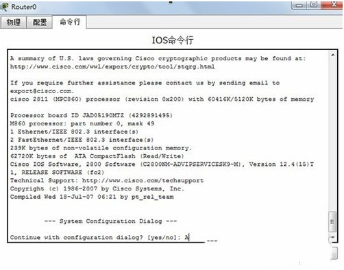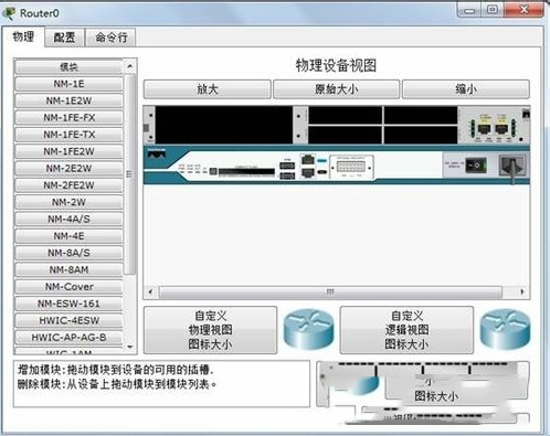 然后双击拓扑中相应的设备给他插入模块。我双击的是router0?弹出对应窗口