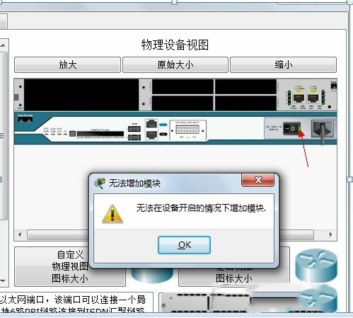 出现下面这个情况表示红色箭头位置开关没有关。设备是模拟不能热插拔的。记得安装上模块了之后要打开电源。