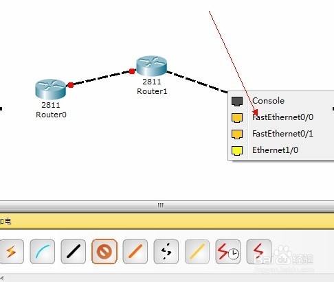 Router0?和router1就连起来了。电脑自动帮你选了用交叉线。