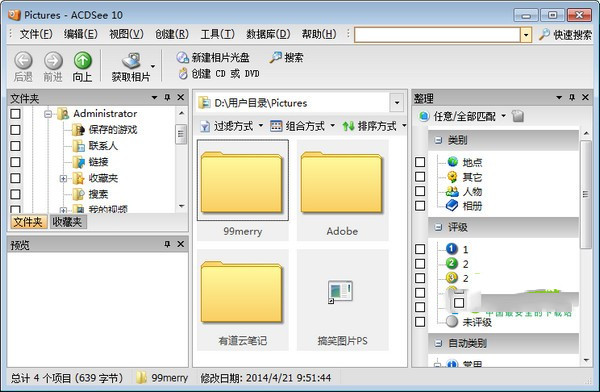 ACDSee10中文免费是目前最流行的数字图象处理软件,广泛应用于图片的获取、管理、浏览、优化甚至和他人的分享等领域,基本上成为建筑,图象从事人员必备软件。使用ACDSee 10.0,你可以从数码相机和扫描仪高效获取图片,并进行便捷的查找、组织和预览。ACDSee超过50种常用多媒体格式被一网打尽!