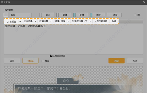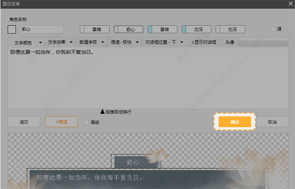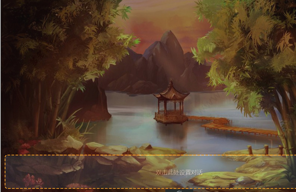 1、鼠标双击【效果画面】中【双击此处设置对话】,即可跳出文本设置栏。