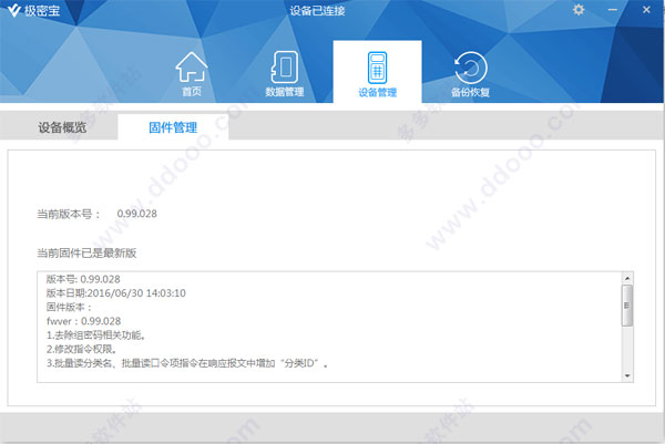 4、通过设备管理可查看当前设备的详细信息,同时可对设备进行固件升级操作