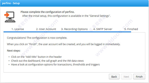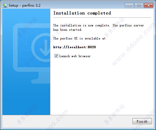 7、以上信息设置完毕,等待Perfino安装完毕即可,完成后,点击【Finish】按钮启动程序