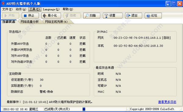 光行资源网为用户提供的彩影arp防火墙是一款简单实用、功能强大的arp防火墙软件,该软件具有完全自主知识产权,可以解决ARP病毒、ARP攻击、ARP欺骗、IP冲突、挂马、网速被限制、断网、掉线等问题,并且支持反p2p、反网络执法官、反网络剪刀手等操作,能够更好的保护你的电脑安全防止arp攻击,是一款提供全方位ARP问题解决方案。这里小编带来的是彩影arp防火墙破解版,解除了所有软件的限制,可以让用户完全免费使用。另外个人用户推荐使用软件包中的彩影arp防火墙单机版6.0.2版本。