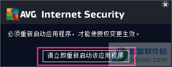 5、注意:激活后,必须重新启动计算机,AVG在任务栏上的实时监控,才能运行。如果不重启电脑,AVG在任务栏上的实时监控,会自动退出。