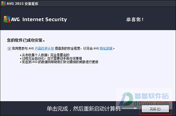 8、重启计算机后,桌面上出现AVG 2015图标,打开软件用户已经可以免费使用。