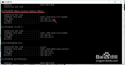 首先打开Linux虚拟机后,查询虚拟机ip地址,如图所示,在CMD命令中,输入ipconfig即可查看虚拟机的ip地址