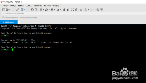 点击是否连接成功,输入“ls”进行查看,看是否能查看虚拟机上的文件目录