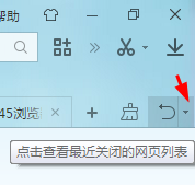 入口一:标签栏右侧的恢复按钮,如图可以直接点击恢复上一个关闭的网页,也可以点击下拉菜单选择某个网站打开。