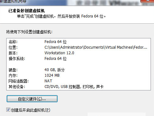 6、点击“完成”开始创建,此处也可以在自定义硬件中将内存和CPU核心的数值适量提高