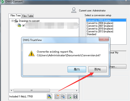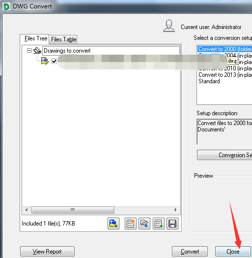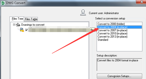 打开图纸后,在右侧选择要转换的版本并点击convert开始转换,如图所示。