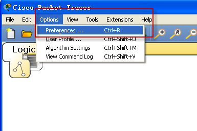 2、然后启动PT 6.0,打开Options选项,选择第一项Preferences,在Interface的选项卡下面有个“Select Language”在下面的框里选择“Chinese.ptl”然后点击右下角的”Change Language“ 。