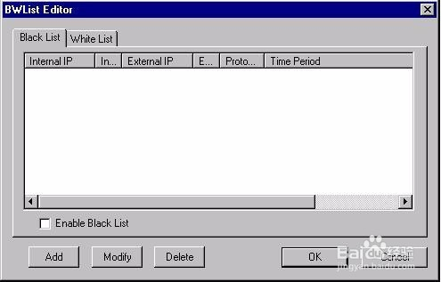 选择工具栏上的“权限”按扭,出现配制权限窗口,Sygate为了提高安全性,设置了权限的密码保护窗口,用户输入准确的密码后,出现如图的“权限编辑器”窗口,单击“增加”按钮,添加一条黑名单规则,并选择“激活黑名单”选项,操作如下。