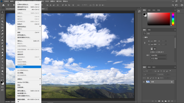 而Photoshop 2021一个比较重要的功能更新便是一键“天空替换”功能,在“编辑”选项中可以找到。