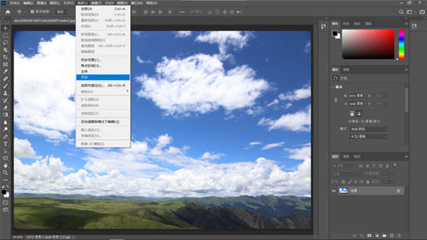 在“选择”菜单中,新增了一个“天空”的选项,在处理有天空的图片时,可以一键选择天空或天空以外的主体。
