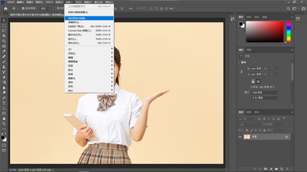 第二个比较重要的更新是“神经网络AI滤镜”(暂译名),可在“滤镜”菜单找到,这一功能主要是对人像进行一些智能调整。