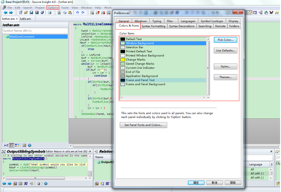 扩充1:Source Insight可以定义风格,菜单栏-选项-风格,即可以打开风格窗口,可以新建一个风格或修改一个风格。风格可以继承(和C++继承差不多)。