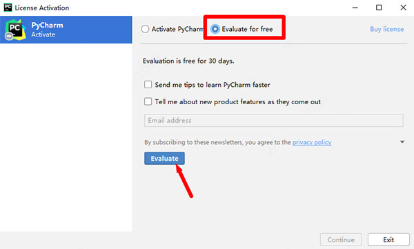 9、弹出软件注册界面,选择evaluate for free,点击evaluate试用软件。