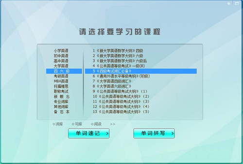 >> 包含了中小学、大学、四六级、考研、托福雅思词汇,共计500多个课程,50多万词汇。