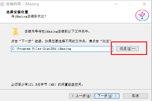 2、选择iMazing试用版安装位置,您可以点击【浏览】,在打开的窗口中您可以自行选择软件安装位置,选择完成后点击【下一步】。