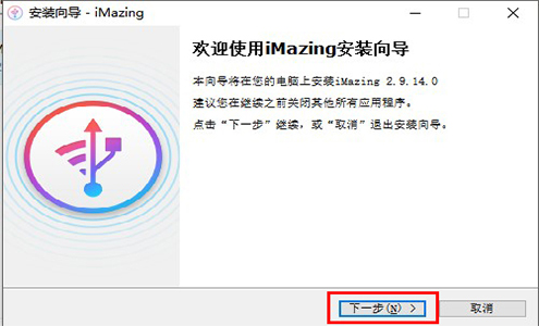 1、在本页面下载iMazing试用版软件包后,解压后在电脑本地得到一个.exe文件,双击.exe文件打开软件安装界面,点击【下一步】。