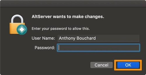 6) 输入 mac 系统用户名和密码,点击"OK"
