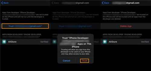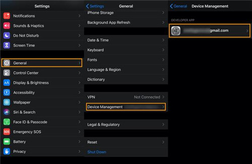 12) 进入"设置"->"通用"->"设备管理"->"选择你的 apple ID"->点击"Trust……"