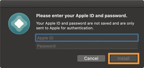 11) 在弹出的对话框内输入你的 apple ID 和密码,点击"Install"进行安装