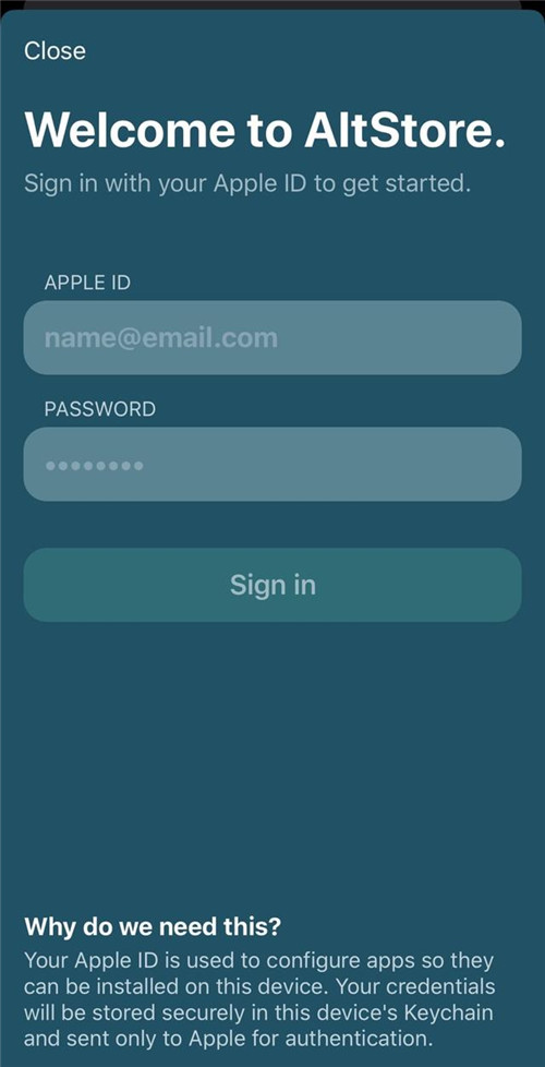 14) 点击打开后进入 AltStore,要求你输入你的apple ID 及密码。