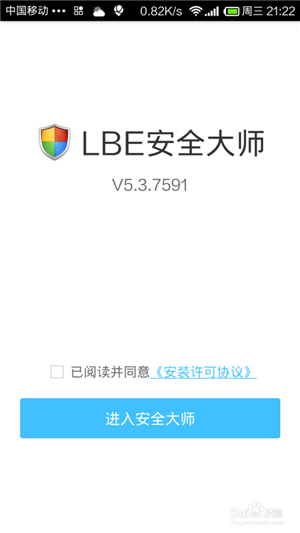 在安装好LEB安全大师后,选中 已阅读并同意《安装许可协议》点击进入安全大师!