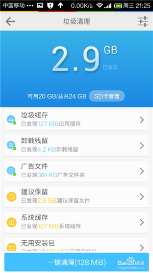 最后一个也是最出彩的一个,垃圾清理!你能相信这手机里居然有那么多垃圾么!2.9G~~也许你的手机还更多!来安装试试看把!