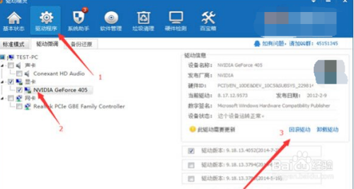 2)选择驱动程序→显卡(有双显卡的选择独显)→选择旧版本驱动进行回滚驱动