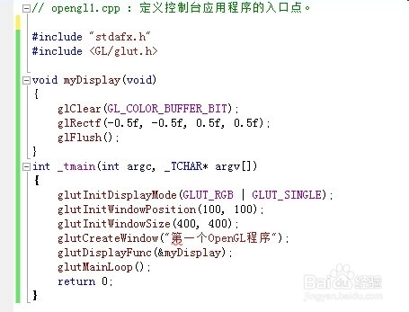 改变颜色,在代码里面添加代码:glColor3f(0.0f,1.0f,0.0f);