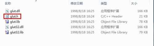 glut.h放入文件夹C:\Program Files (x86)\Microsoft SDKs\Windows\v7.0A\Include\gl