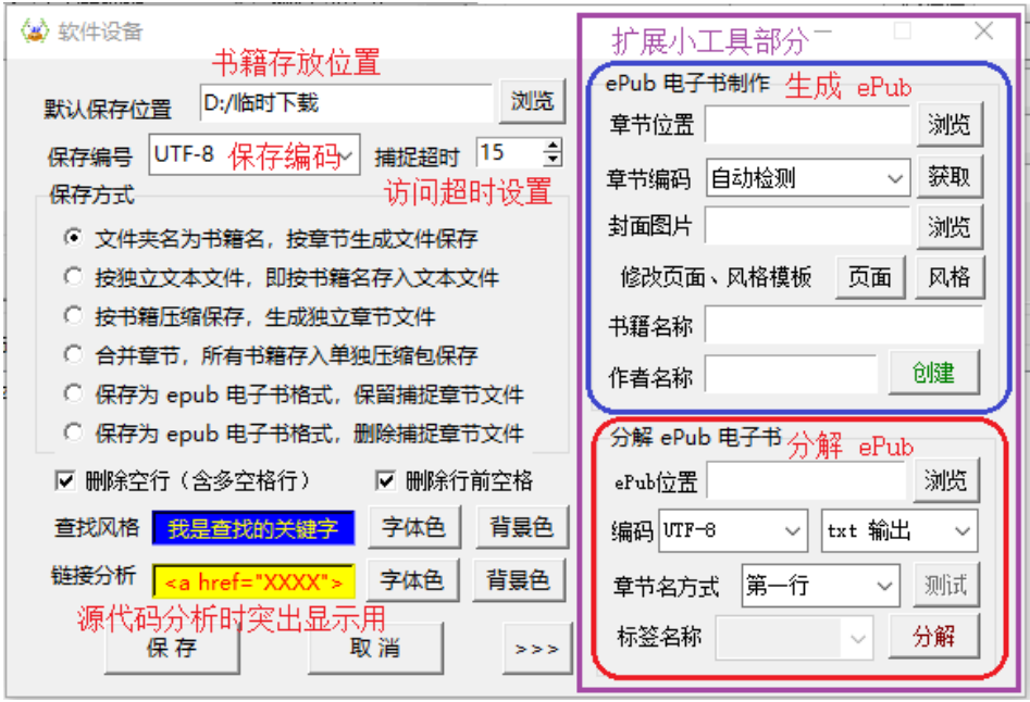 小说规则捕捉器能通过小说网站的html网页源代码,分析关键信息的规则进行书籍捕捉,最终输出捕捉到的书籍(支持 txt、ePub、zip 格式输出)。能对绝大多数小说在线阅读开展文章内容捕获的专用工具,内嵌源码查看器,出示链接分析、重要精准定位等专用工具,并且还出示多种多样?出方法,包括按章节目录文档、单独文本文档等。能对寻找的小说进行多重设定,更快更轻松的找到想看的小说资源。