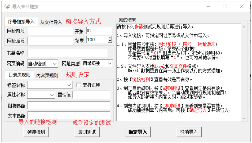 1、从存有章节页面链接的文本文件、excel 文档中导入任务进行捕捉;
