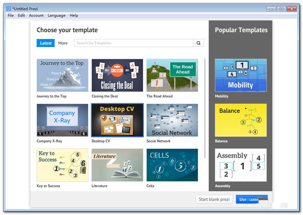 Prezi软件下载信息:软件大小:480MB,属于办公软件,是一款优秀的演示文稿软件!用户能在这里通过简单的操作就能制作新颖的演示文稿,同时支持不同设备之间进行同步备份等操作,方便用户随时都能进行文稿的展示,软件提供了简洁的操作界面,致力为用户带来强大和创意性十足的功能!Prezi登录及版本选择介绍,