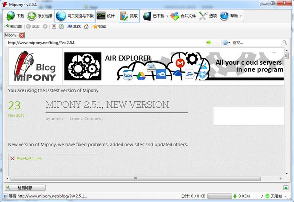 1 Mipony 已内置了网页浏览器,方便在软件界面打开文件链接并自动下载.