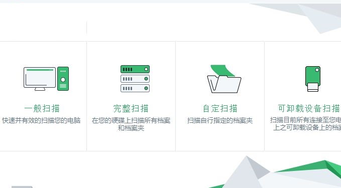 2、打开了软件之后在左侧单击打开扫描界面,在这里我们就可以扫描选项,根据自己的需求来选择一般扫描或是完整扫描等方法查杀病毒!