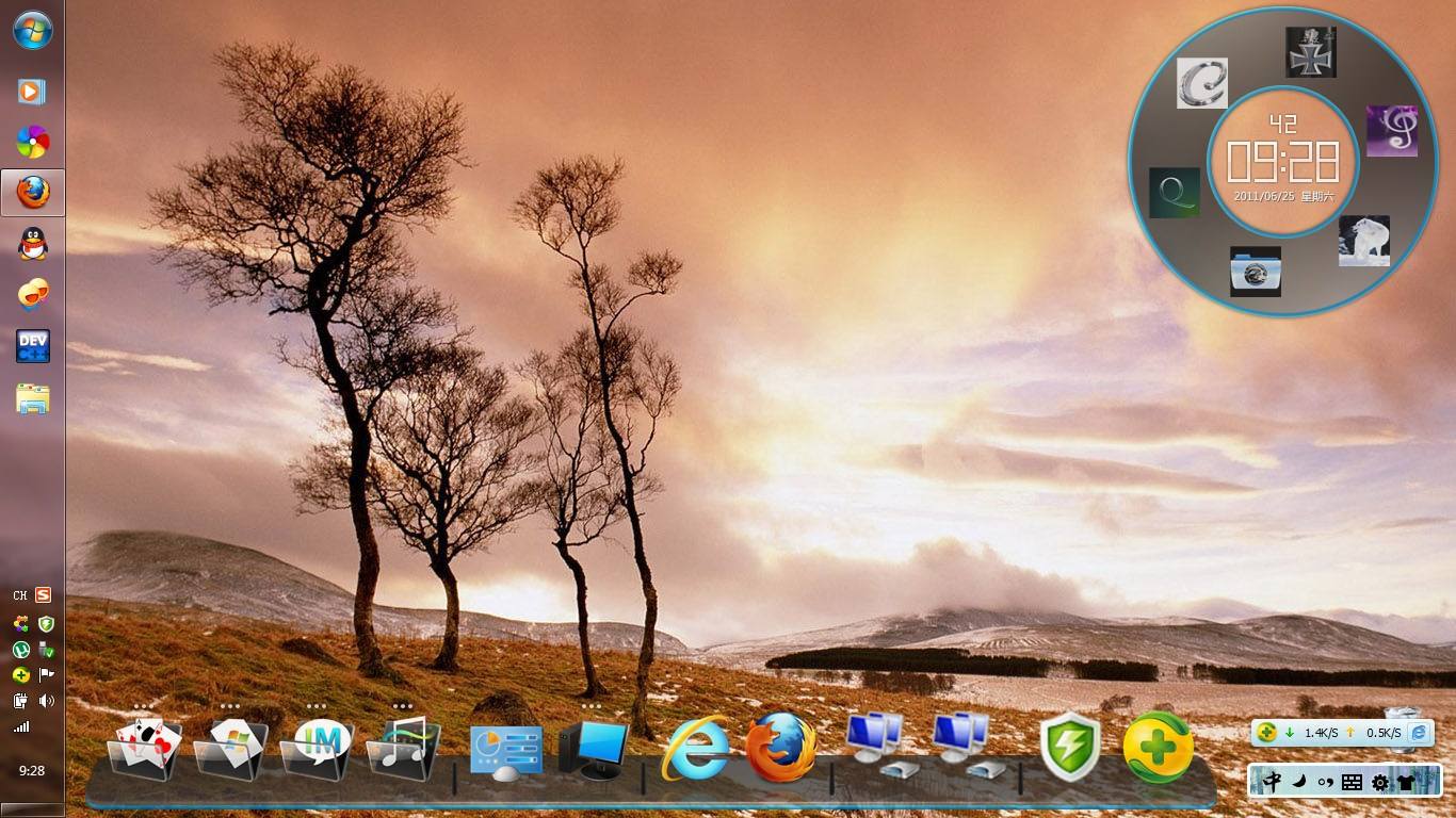 3、将常用图标拖动到酷点软件的条形棒上后,就可以双击隐藏桌面了。看起来就简洁美观多了。