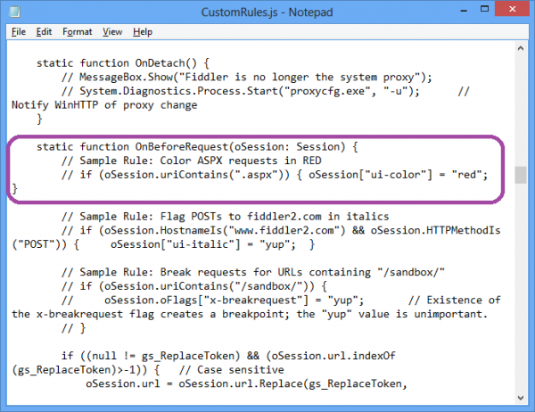 Fiddler支持通过Jscript方式扩展功能,比如自动通过脚本对请求及回复进行处理。具体的实例可以参考fiddler提供的实例代码。