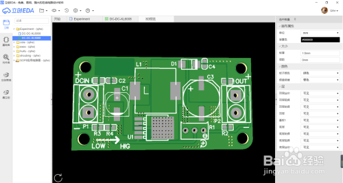 点击顶部工具栏中的;预览”,可选择3D预览或者照片预览,对比电路板是否与事物有出入。