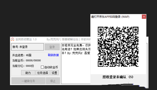 京东双十一脚本,是一款可以帮助用户自动完成京东营业活动的脚步工具!为用户提供非常方便的一键完成任务功能,让用户不需要浪费大量精力进行操作,只需要一键点击即可轻松完成各种双十一任务。本站这次为用户带来的京东双十一脚本pc版,让用户可以在电脑上进行使用,打开电脑轻松挂机完成京东营业活动。专为00年京东双十一活动推出的自动脚本;,界面以简洁为主,没写花里胡哨的界面