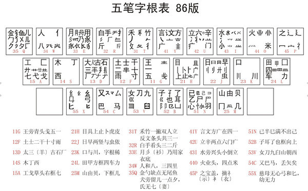 3、第二个区域是竖区,同样是指在汉字的第一笔是竖,具体的字根图的内容如下