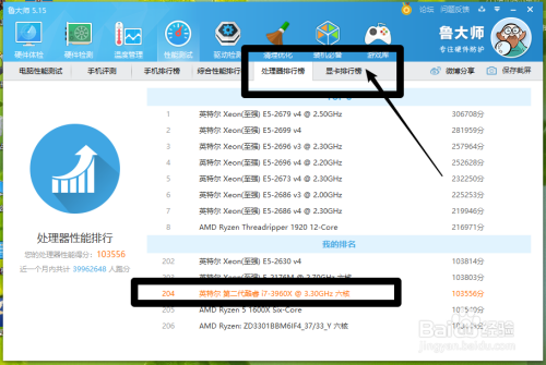 还可以点击上方的【处理器、显卡排行榜】查看性能排行