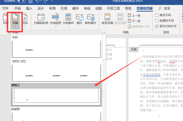 4、接着选择左侧的页脚,选择一个喜欢的页码表现形式。