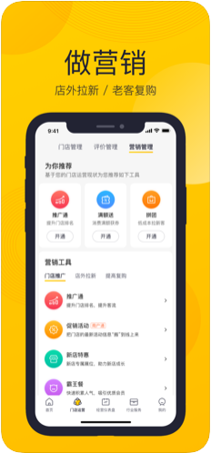 美团开店宝电脑版是由美团全新推出的在线智能门店管理软件!一款专为营销的用户提供了多方面的营销方案,让每一个用户都能在这里体验最简单的营销方式,店外拉新更简单。美团开店宝商家电脑版内置了专业的店面管理功能,用户可以在这里一键管理自己的门店,评价回复,一一管控。